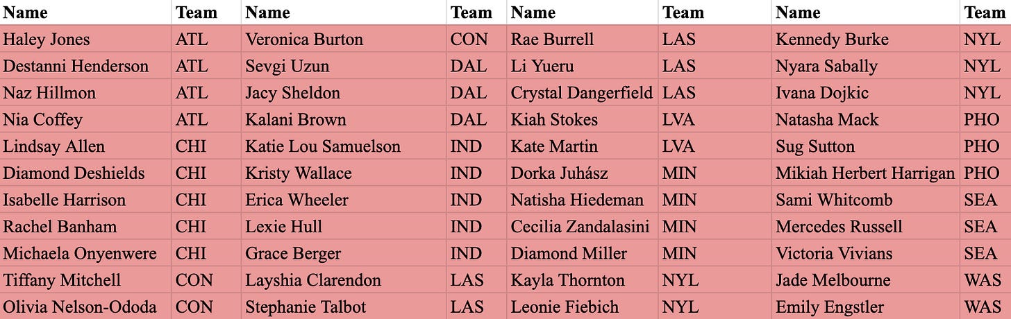 One athlete that stands out as being misidentified here is Chelsea Gray. Gray, representing Team USA at the Olympics this year didn’t return until June to the Aces lineup following a foot injury in last year’s playoffs. If she were healthy and contributing for the entire season, my best guess is that Gray would be placed in tier two.